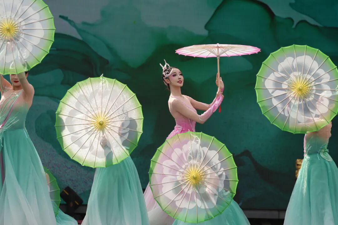 演出好戏连台、精彩纷呈:《龙凤呈祥》拉开序幕,唢呐《苏北风情》尽显苏北乡土情怀;中国曲艺“牡丹奖”获得者叶香演绎《十二月花名夹古人》,彰显曲艺魅力;杂技《纸影弄春·空竹》融合纸影雅韵与高超技艺,赢得阵阵喝彩。