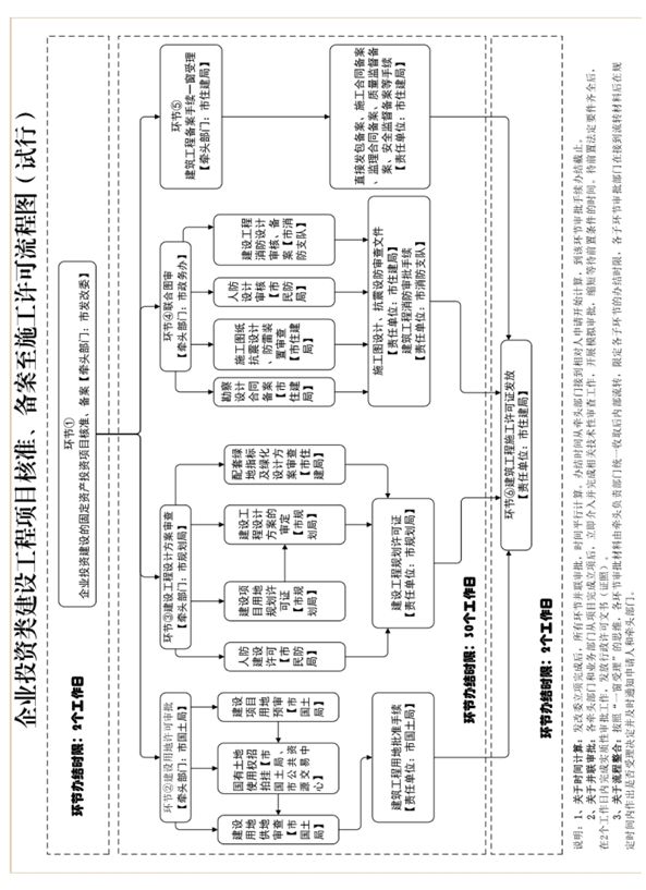 为切实提升我区“开办企业”“施工许可”“不动产交易登记”办理效率,实现“3个工作日内企业注册开业、5个工作日内获得不动产权证、50个工作日内取得施工许可证”的目标。由区审改办统筹,区工商局、住建局、国土分局分别牵头,相关部门参与,对我区“开办企业”“施工许可”“不动产交易登记”办理流程进行优化,研究编制全链条办理流程图、梳理提交材料清单、整合压缩办理环节和时限。